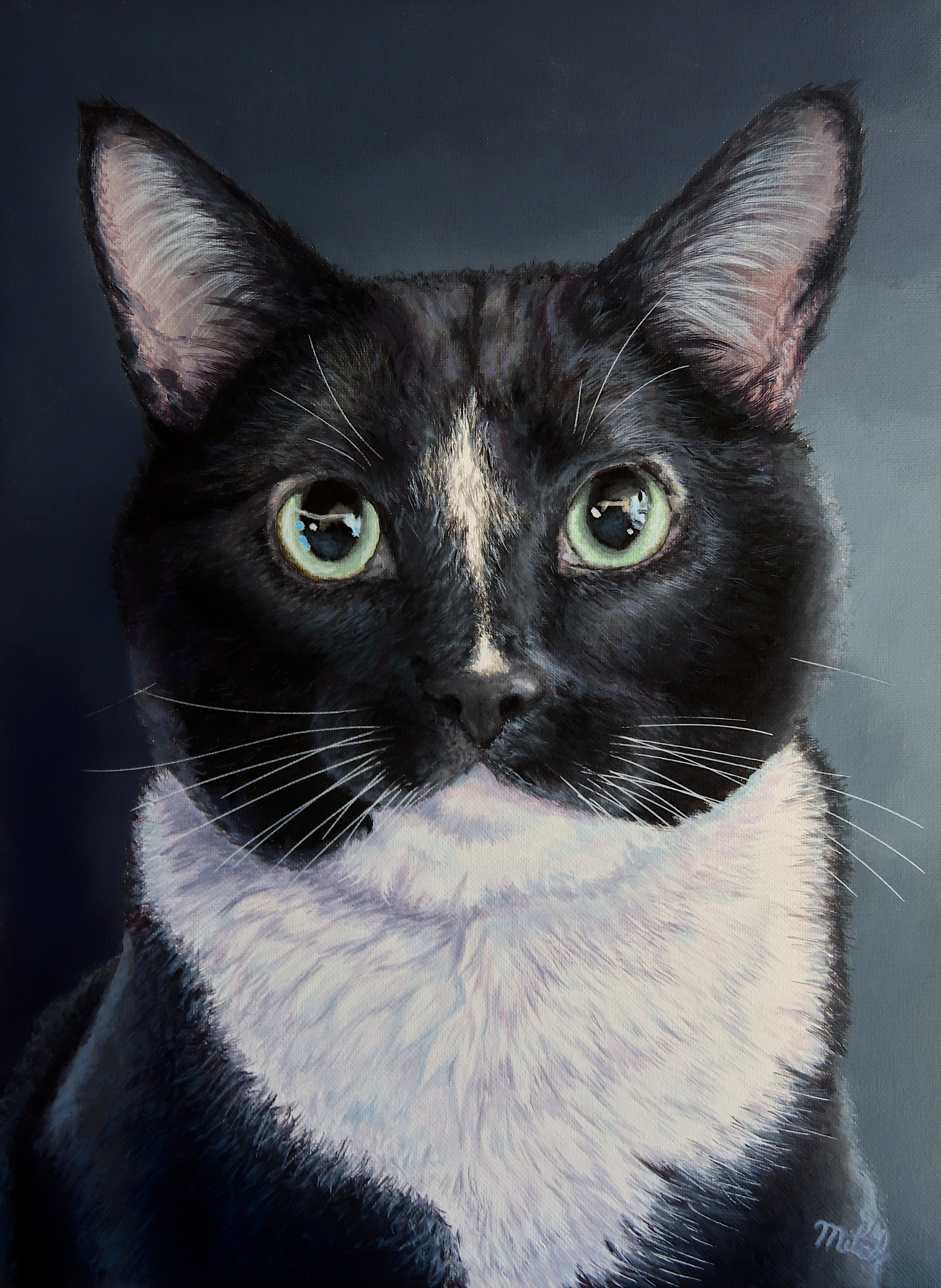 My portfolio showcases various paintings I have made of dogs and cats. I have two canvas sizes that I paint on. A slideshow for both the 12″×12″ and 12″×16″ examples of my work can be seen below. See my contact information or the commissions tab for more information on having your pet painted.